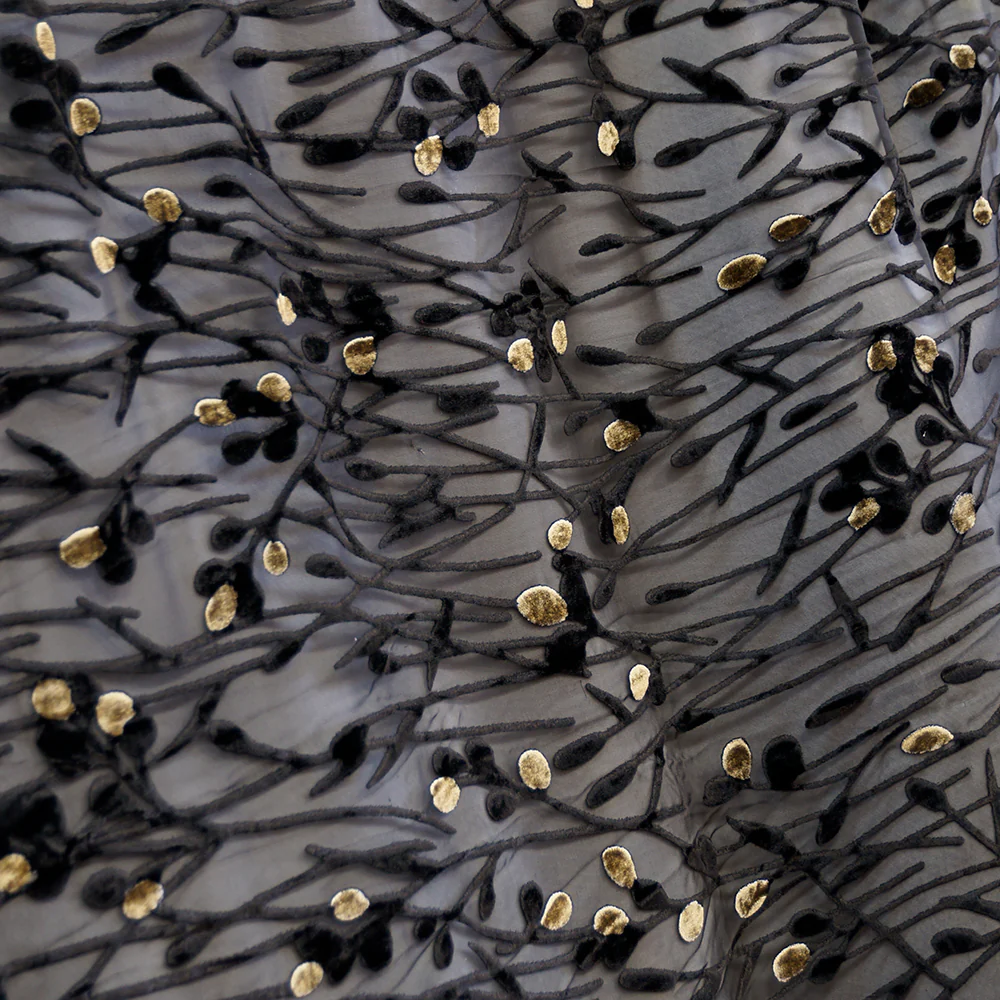 Black and Gold Buds Burnout Velvet Fabric - 100% silk—